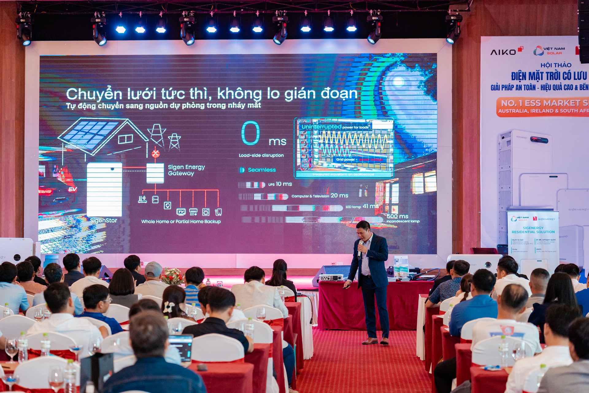 Kiến trúc dự phòng điện năng 0ms cho Workstation/Server: SigenStack là một trạm lưu trữ điện mạnh mẽ với khả năng chuyển mạch 0ms.Hội thảo Điện mặt trời có lưu trữ của Việt Nam Solar, AIKO và Sigenergy đã vượt xa kỳ vọng của một sự kiện trưng bày sản phẩm. Nó mang đến một hệ tư duy mới: Năng lượng tái tạo giờ đây chính là quản trị hạ tầng thông minh.