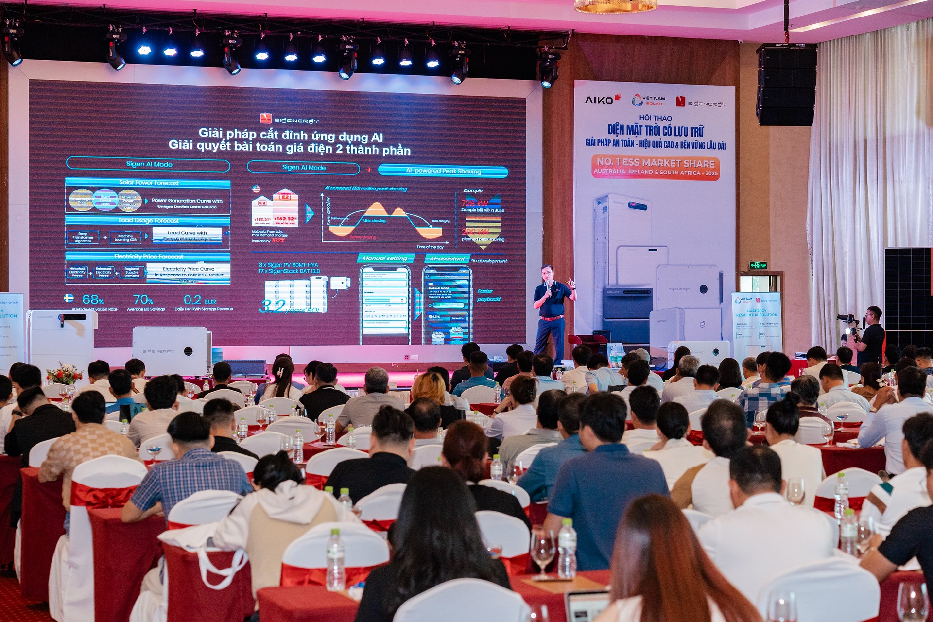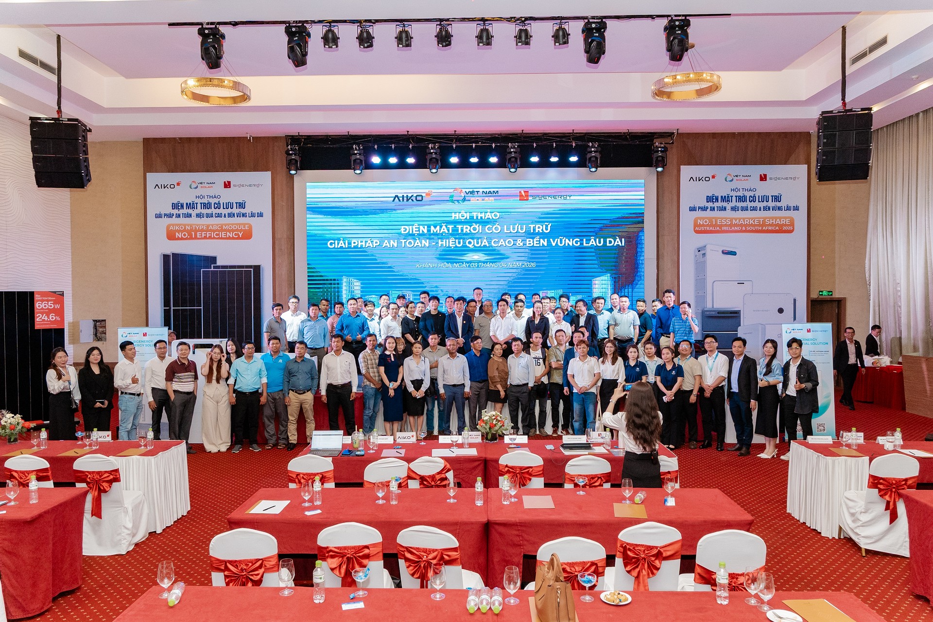 Trong bối cảnh chuyển đổi số và phát triển bền vững đang trở thành xu hướng tất yếu, việc xây dựng một hạ tầng năng lượng an toàn, liên tục và thông minh là bài toán đặt ra cho mọi doanh nghiệp. Vừa qua, đại diện KBA.2018 đã có mặt tại khách sạn Mường Thanh (Nha Trang) để tham dự xuyên suốt sự kiện "Hội thảo Điện mặt trời có lưu trữ" do Việt Nam Solar cùng hai thương hiệu công nghệ AIKO Solar và Sigenergy đồng tổ chức.